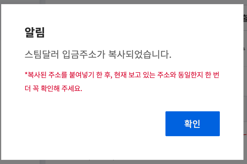 스팀달러를 클릭하면 오른쪽 창이 스팀달러 관련 창으로 변경될 거예요.