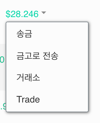 스팀달러 잔고를 확인해 보니 $28.246 금액이 찍혀 있네요. 숫자 옆의 화살표 버튼을 누르면 송금, 금고로 전송, 거래소, Trade 이렇게 4개의 항목이 보입니다. 저는 업비트로 스팀달러를 보낼 예정이니 '송금'을 선택했습니다.