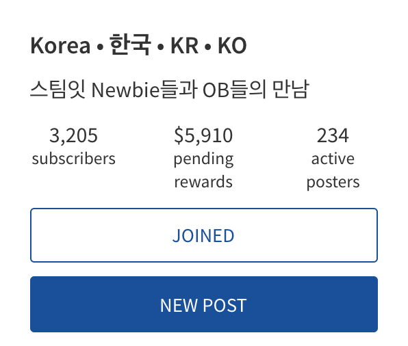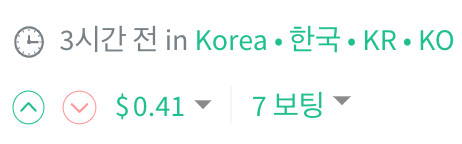보팅 내역은 각 글의 하단 부분에서 확인할 수 있습니다. 위 사진의 경우 'Korea•한국•KR•KO' 커뮤니티에 3시간 전에 발행된 글이며 7명에게 보팅을 받았고, 총 보팅액은 0.41달러라는 의미입니다.